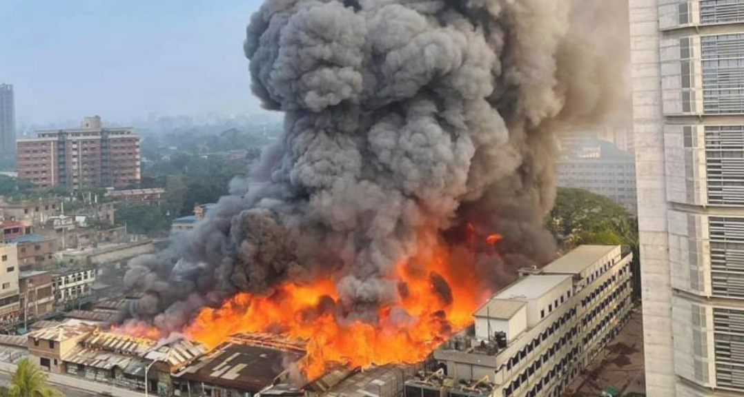 স্মরণকালের ভয়াবহ আগুনে দাউদাউ করে জ্বলছে রাজধানীর বঙ্গবাজার মার্কেট। সময় যতই গড়াচ্ছে বাড়ছে আগুনের তীব্রতা। চার ঘণ্টা পার হলেও আগুন নিয়ন্ত্রণে আসেনি।বঙ্গবাজারের সঙ্গেই ফায়ার সার্ভিসের সদর দপ্তর। অথচ এতো কাছে থেকেও প্রতিষ্ঠানটি আগুন নিয়ন্ত্রণে এখনও সফল হতে পারেনি। । আগুন নিয়ন্ত্রণে আনতে কাজ শুরু করে ফায়ার সার্ভিসের প্রায় অর্ধশত ইউনিট। কিন্তু নিয়ন্ত্রণের বাইরে চলে যাওয়ায় অর্ধশতাধিক ফায়ার ইউনিট কাজ করলেও এখনও নেভানো সম্ভব হচ্ছে না আগুন।রাজধানীর বঙ্গবাজার মার্কেটে আগুন লেগেছে। মঙ্গলবার সকাল ৬টা ১০ মিনিটে আগুন লাগার খবর পায় ফায়ার সার্ভিস। আর ৬টা ১২ মিনিটে ঘটনাস্থলে পৌঁছায় দমকল কর্মীরা।মূলত টিন ও কাঠ দিয়ে নির্মিত বঙ্গবাজার দেশের অন্যতম বৃহৎ কাপড়ের মার্কেট।তাৎক্ষণিকভাবে আগুন লাগার কারণ ও ক্ষয়ক্ষতির পরিমাণ জানা যায়নি। এখন পর্যন্ত হতাহতের কোনো খবরও পাওয়া যায়নি।
